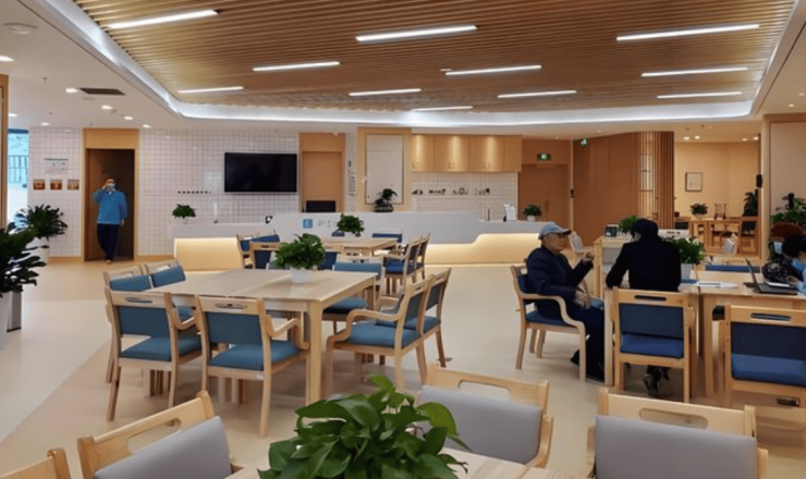 起居室的设计充分考虑了老年人的生活习惯和特点,配备了分户式新风和分户式空调系统,以及24小时热水和地采暖等设施,确保每位老人都能享受到高品质的居住体验。此外,社区首层设有24小时医疗中心,内设医疗诊室、处置室、康复室和理疗室等设施,能够满足老年人日常的医疗需求。