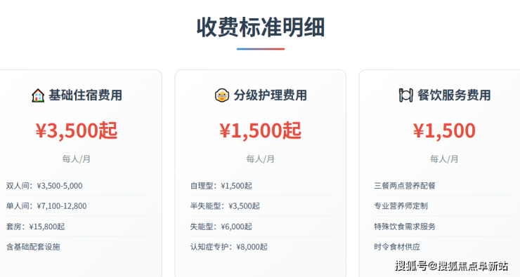 费用起始区间:房间基础费用7100元/月起。这是一个重要的参考起点,实际总费用将根据长者选择的房间类型、护理等级及个性化服务需求进行组合计算。