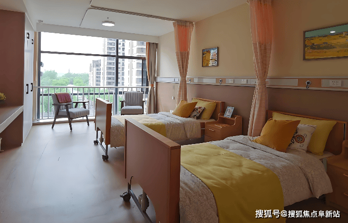 双人间:适合两位老人共同居住,房间内有两张床,中间有适当的隔断,保证了老人的隐私。同样配备了齐全的家具和电器,以及独立的卫生间,为老人提供了一个舒适的居住空间。