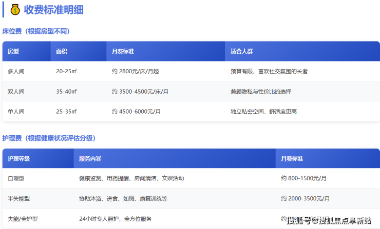 单人间:5000-7000元/月(配备智能护理床+全景窗)