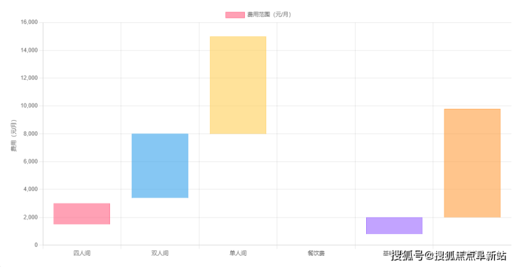 房型费用:四人间1500-3000元/床/月,双人间4000-8000元/床/月,单人间8000-15000元/月