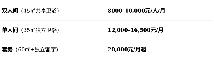 二、价格体系透明,8000元/月起 + 5万元押金