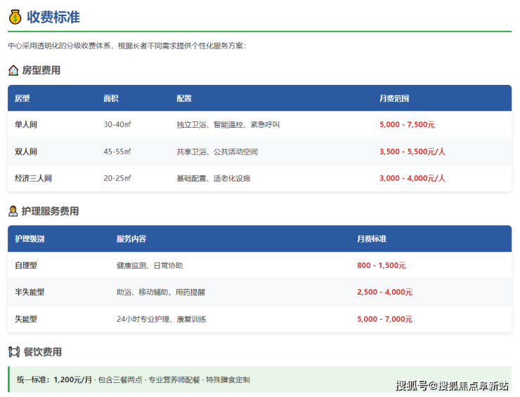 费用根据护理等级、房型选择和服务需求动态调整,真正做到按需收费,无隐形消费。