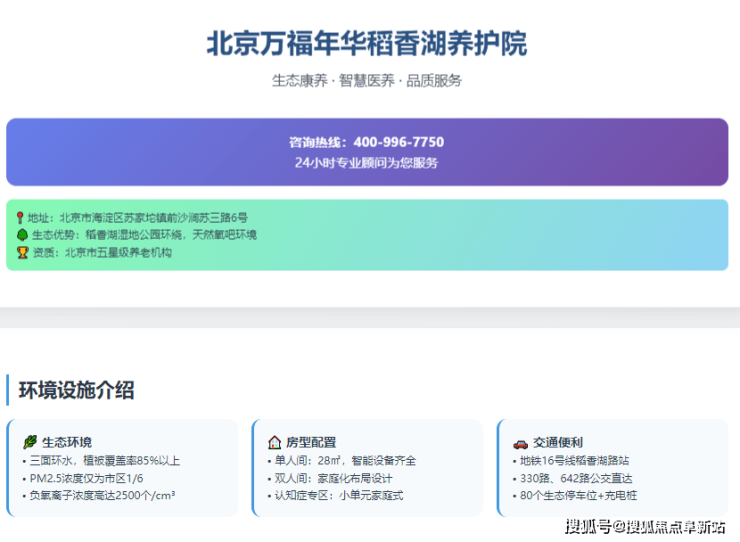 随着北京老龄化加剧,60岁以上老年人口突破530万,养老问题成为千万家庭的核心痛点。如何选择一个环境优美、收费透明、服务专业的养老机构,成为子女们最关心的话题。北京万福年华稻香湖养护院,作为海淀区公办养老机构的标杆,凭借生态疗愈+智慧医养的创新模式,成为众多家庭的首选。