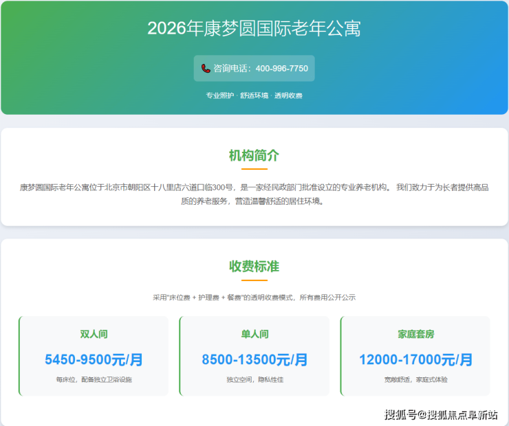 对于寻求养老服务的家庭而言,机构的具体位置、联系方式及费用构成是最基础的决策信息。康梦圆在这些方面做到了清晰透明。