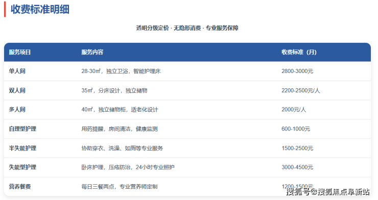 单人间(28-30㎡,含独立卫浴、智能护理床):每月2800-3000元