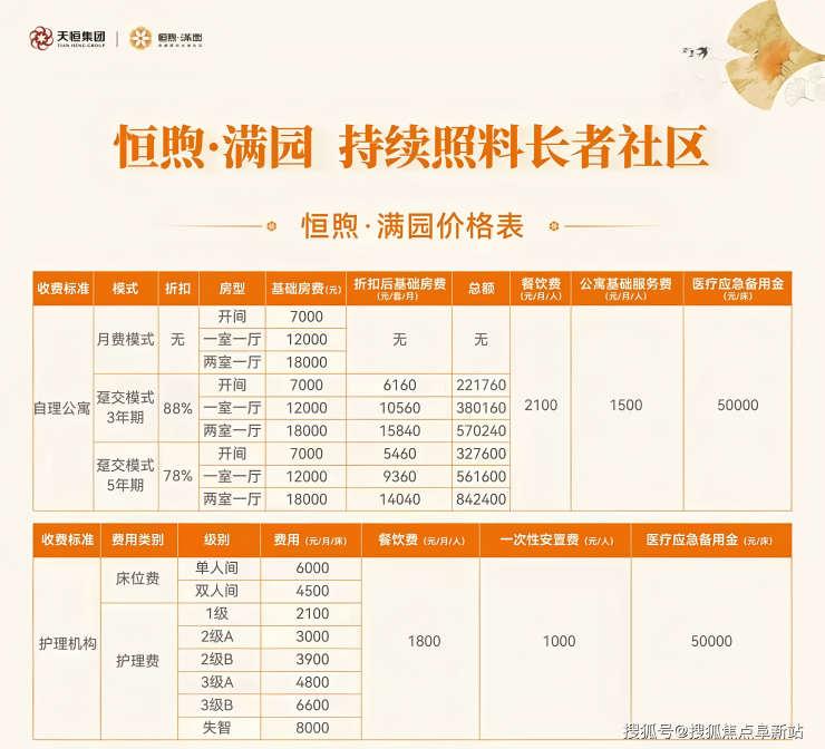 恒煦满园长者社区2026年2月首页信息:房型、收费、服务项目