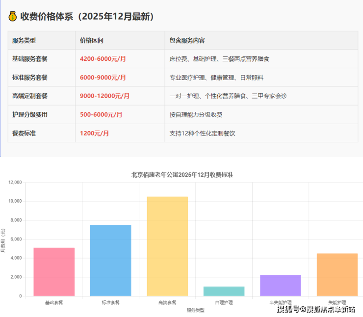 佰康老年公寓采用"基础服务费+分级护理费+增值服务费"的复合定价模式,所有费用明码标价: