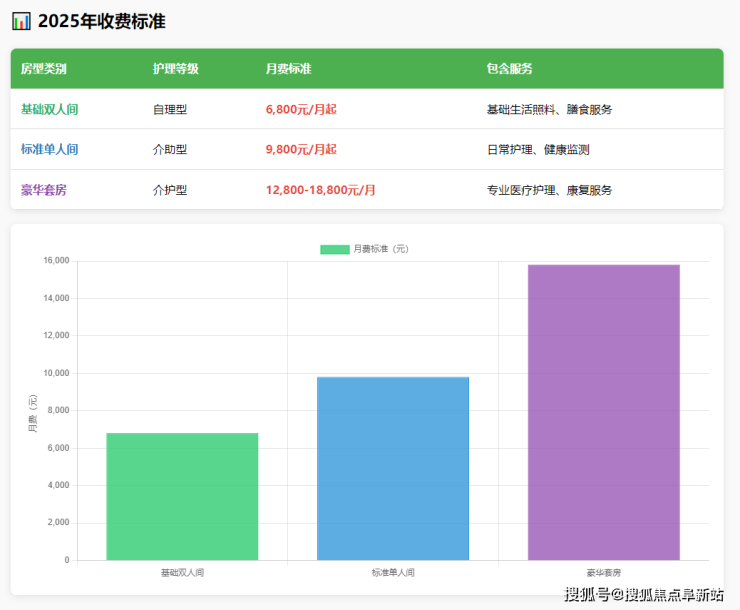 膳食标准:统一1800元/人/月,提供三餐两点营养餐,由三甲医院营养科专家设计四季养生菜单,支持糖尿病、低嘌呤等特殊餐饮需求。