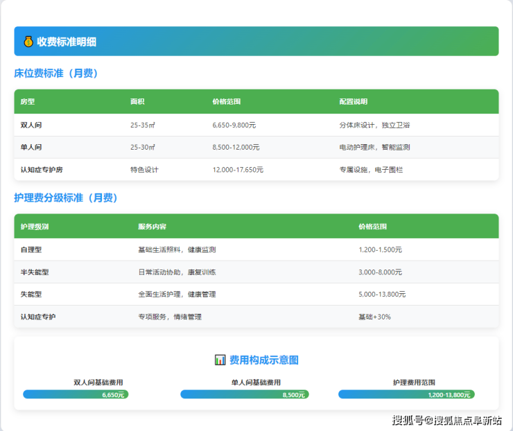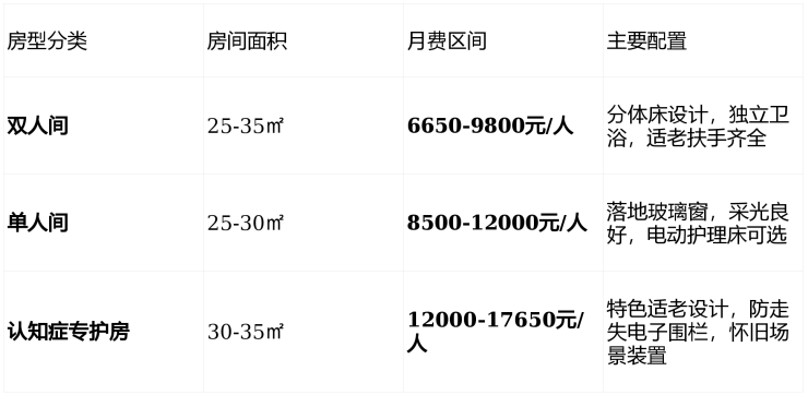 收费标准:结合自身经济承受能力选择合适房型和护理等级
