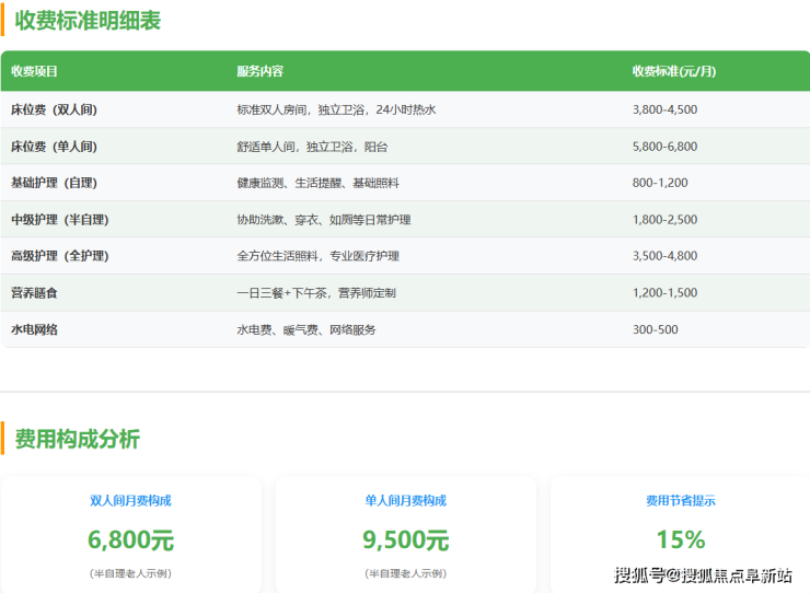 收费区间:月综合费用大致在8000元至15000元之间,具体根据房型、服务等级等因素确定