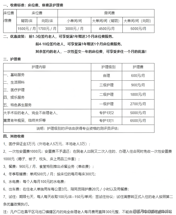 北京市昌平区马池口镇养老照料中心收费价格:2800-7800元/月