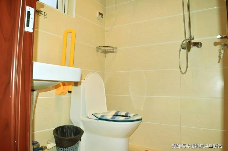 (一)适老化结构基础完善:房间铺设防滑地砖,床边设扶手及感应夜灯,卫生间配备坐便器、紧急呼叫拉绳及防滑垫,公共通道无高差门槛,保障行动安全。