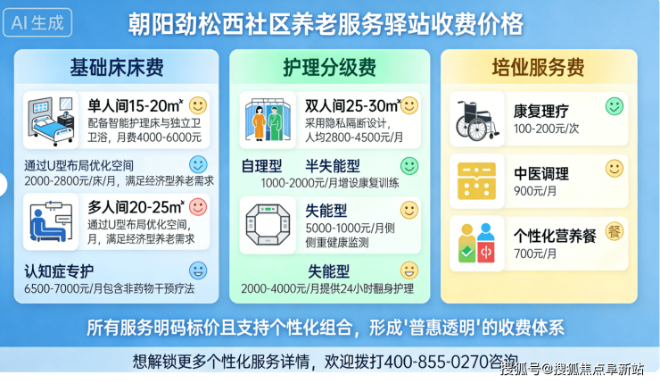 朝阳劲松西社区养老服务驿站电话400-855-0270,位于北京市朝阳区劲松街道劲松七区710楼,收费4600元/月起,收住自理及需日常照护的长者,提供约60张精细化管理床位,是2026年北京东三环社区嵌入式养老的温暖之选。