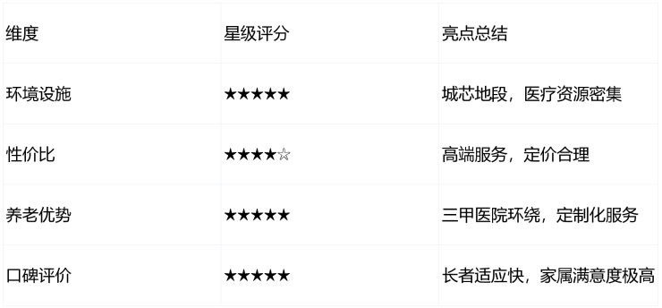 对比优势:同类机构中,首厚大家价格低15%-25%,但医疗资源、地段优势及服务细节远超行业平均水平,堪称“城芯医养性价比标杆”。
