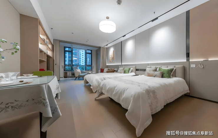 床位配置:总床位3700张,其中独立生活区1480张,协助生活区1110张,专业护理区800张,记忆照护区300张,满足全类型长者需求。