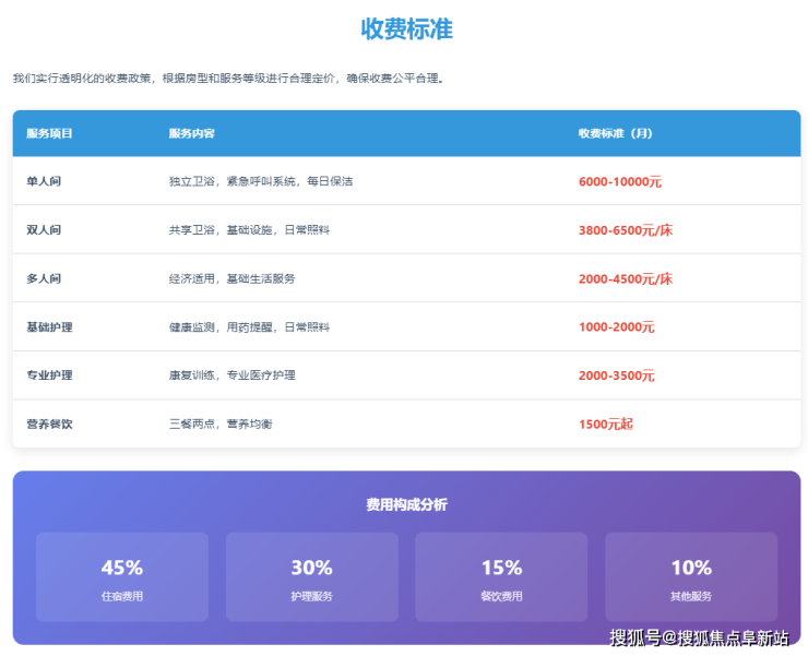 所有费用明码标价,无隐形消费,让家属能够根据长辈的实际需求和经济状况做出最合适的选择。