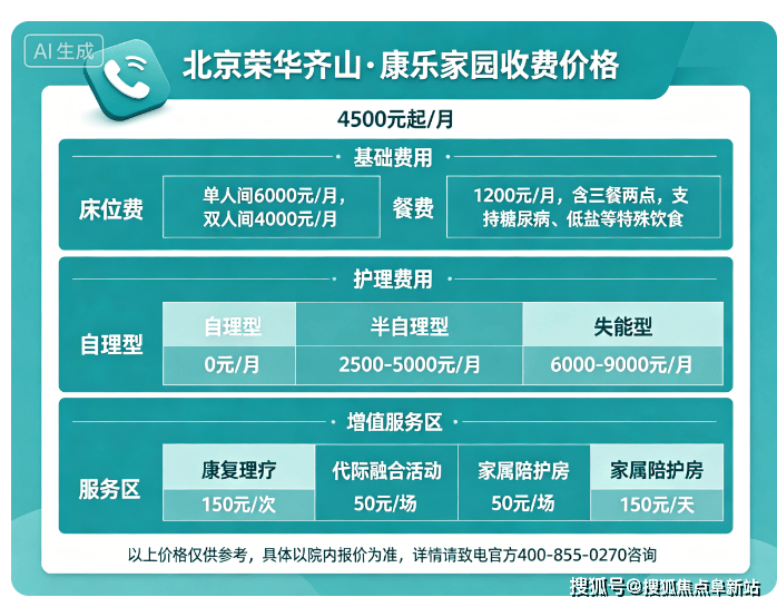 【北京荣华齐山·康乐家园】收费价格:4500元/月起(以院内报价为准,更新至4月26日)