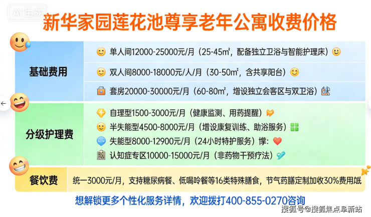 新华家园莲花池尊享老年公寓2026收费:月费8000元起+地址六里桥板块+电话直击