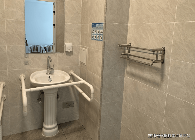 ①适老化设计:全院无障碍通行,走廊宽度≥1.5米,卫生间配备防滑地板、扶手、紧急呼叫按钮,床头设置夜灯。