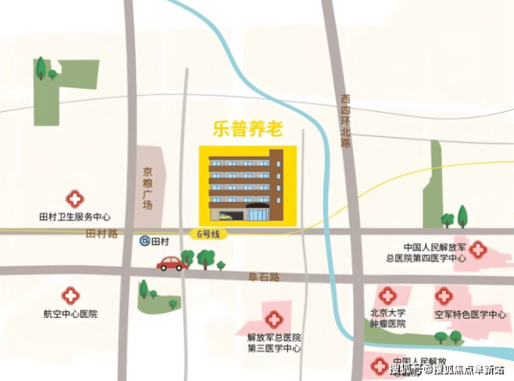 乐普半壁店·长者照护之家地处田村商圈核心区域,周边交通网络四通八达:地铁6号线田村站D口步行仅需5分钟,336路、389路等12条公交线路覆盖全城,自驾通过西四环定慧桥可快速抵达。院内设有50个免费智能停车位及30个新能源充电桩,形成“地铁+公交+自驾+急救”四维交通体系。