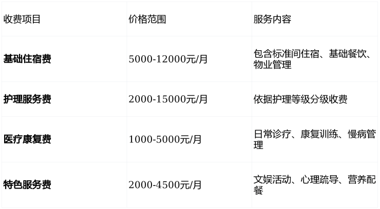自理型长者:5000-8000元/月(健康监测+文娱活动)