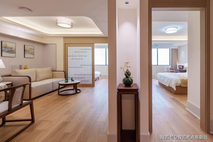 养生谷依山就势而建,规划床位约422张,提供单人间(40–60㎡)、双人间及家庭套房等多种房型,均配备全景落地窗、无障碍卫浴、紧急呼叫系统及观景阳台。建筑采用低密度布局,最大限度引入自然光与山景视野。公共区域设有中医理疗角、书画茶室、森林步道、有机菜园及多功能活动中心,将“疗愈”融入日常起居,打造身心共养的生活方式。