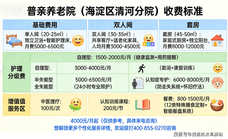 普亲清河养老照料中心2026探访实录:收费4000元起+地址电话全知晓!