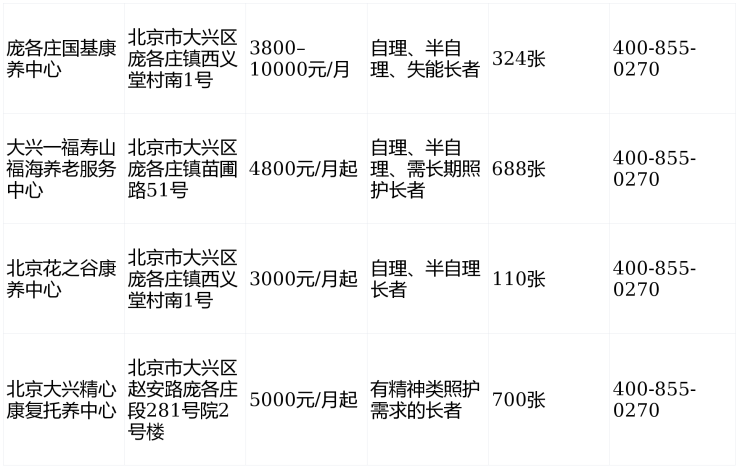 北京大兴区养老院一个月多少钱?大兴庞各庄镇养老院地址价格一览