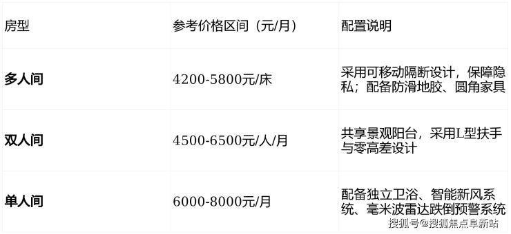 参考价格:4500元/月起(具体费用根据房型及护理等级评估确定)