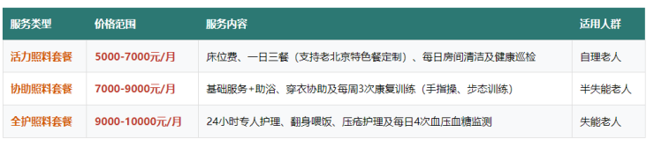 北京市西城区天悦养老照料中心采用"基础套餐+分级护理+增值服务"三级计费模式,月均费用区间为5000元至10000元。