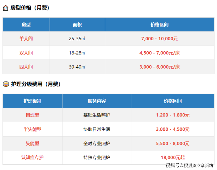 • 价格:9300-42600元/月(根据护理等级和房型差异)