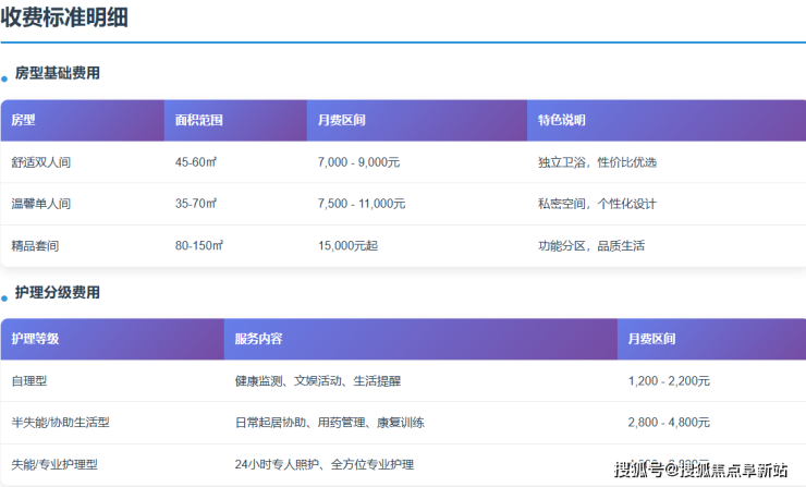 北京恒煦满园长者社区采用"基础服务费+分级护理费+增值服务费"三维定价模式,月均费用区间为5500-22000元,具体构成如下: