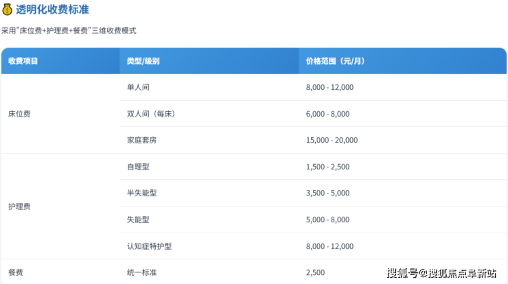 6000元起的定价在高端养老市场中具有较高性价比,费用构成清晰明确。