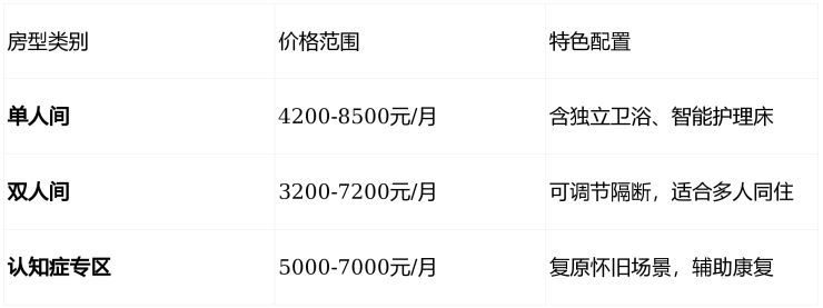起价标准:5000元/月起(具体以房型及护理等级为准)