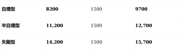 安置费:一次性 2000–3000元(用于入院评估与生活用品配置)