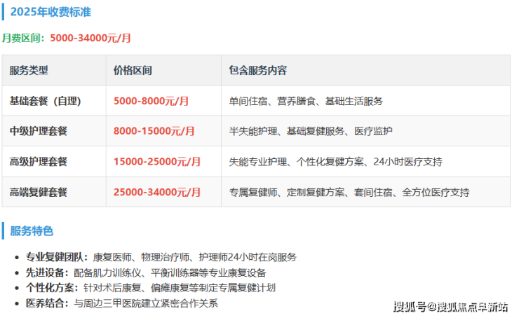 收费情况采用科学的"基础套餐+分级护理+增值服务"模式: