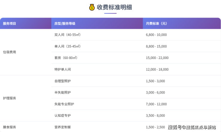 基础自理型:8000-12000元/月(单人间,基础服务)
