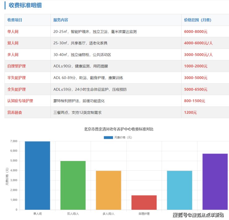 社区嵌入式+智慧康养|北京市普亲清河老年养护中心2025分级收费体系