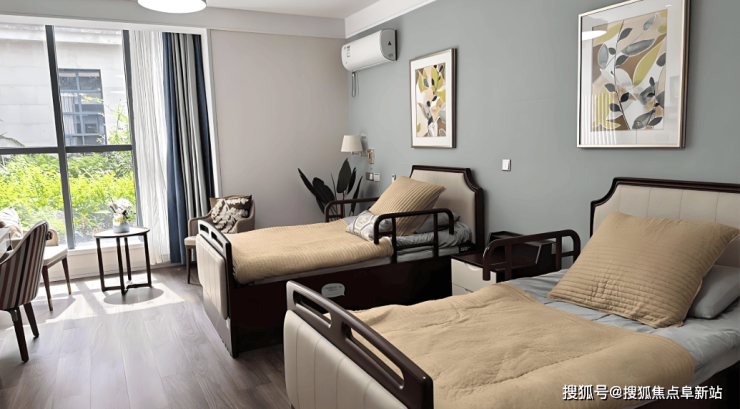 中心采用围合式庭院设计,三栋建筑呈组团分布,形成独立静谧的休憩空间。外园铺设1.8米宽健康步道,串联无障碍休闲座椅、遮阳避雨廊架及防滑地胶步道,双层扶手设计保障长者行走安全。园内规划适老化步道、无障碍休闲座椅及遮阳避雨廊架,步道宽度达1.8米并配备双层扶手,地面铺设防滑地胶,确保长者行走安全。室内以“第一居所”为理念,融入130余项适老化标准:起居空间采用圆角家具、防眩光照明;情绪关怀区设置多媒体室、舞蹈室等6大主题互动空间;安全系统配备毫米波雷达跌倒监测仪、紧急呼叫按钮及智能护理床;功能配套涵盖独立卫浴、恒温花洒及医疗气体接口。全院采光充足,色调以暖木色为主,营造温馨居家氛围。