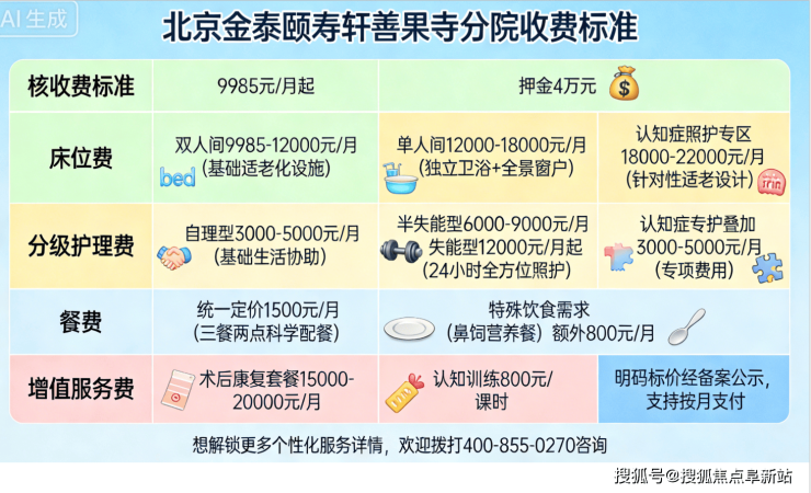 北京金泰颐寿轩敬老院善果寺分院收费价格:9985元/月起,押金4万
