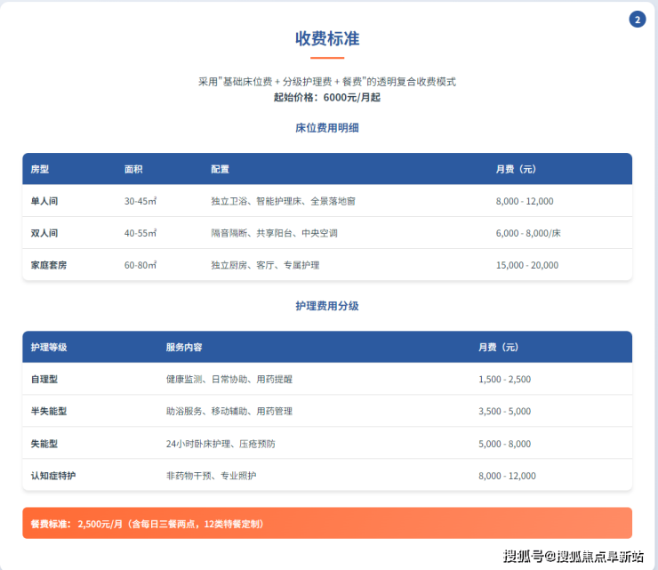 6000元起的定价在高端养老市场中具有较高性价比,费用构成清晰,无任何隐性消费。