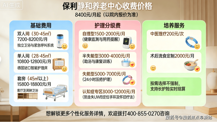 保利静和养老中心地址电话2026:收费8400元起失能失智专护