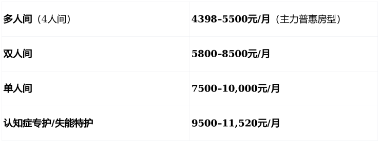 采用“基础服务费 + 分级护理费 + 餐费”模块化透明计价,所有费用经民政部门备案公示,无会员费、无隐性消费。