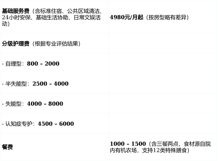 💰 收费标准:4980 元 / 月起(含床位 + 基础护理 + 三餐两点)