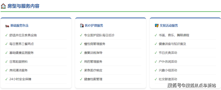收住人群:自理老人、半失能老人等不同健康状态长者
