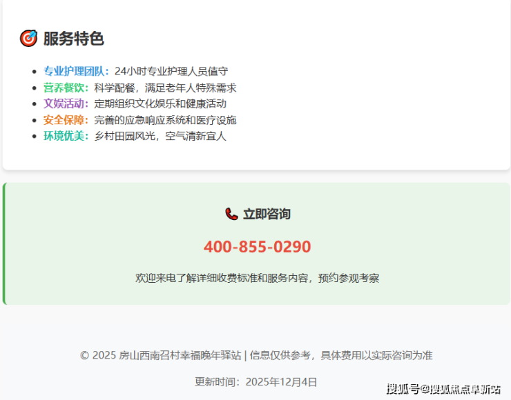 房山西南召村幸福晚年驿站详细介绍:2025最新价格、预约电话一站式服务
