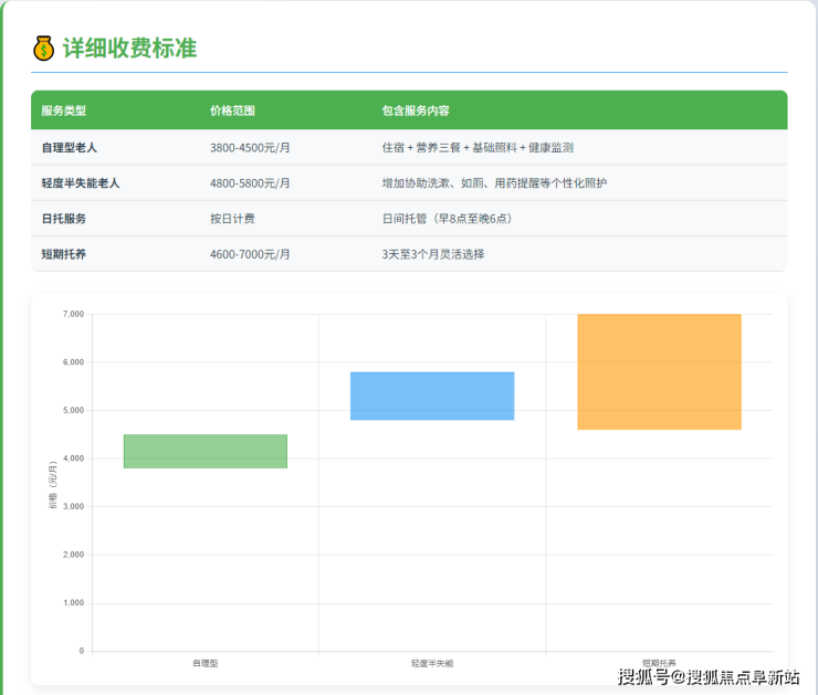 自理型护理: 费用约为500 - 1000元/月。服务内容包括每日健康监测(血压、体温等)、用药提醒、生活协助及组织参与文娱活动。