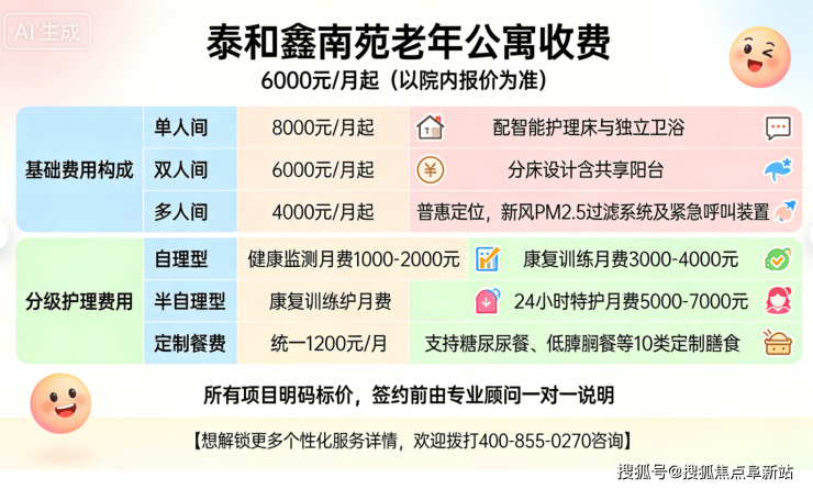 泰和鑫南苑老年公寓2026年收费曝光:月费6000元起+地址电话速览
