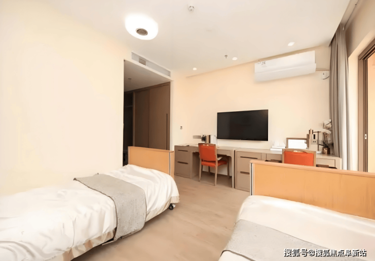 瀛海院区规划343张床位,涵盖单人间(28-45㎡)、双人间(25-35㎡)及套房(50-60㎡)。房间配备智能护理床、紧急呼叫系统、恒温花洒及防滑地胶,公共区域安装毫米波雷达跌倒监测仪,形成“30秒应急响应”机制。黄村院区则以一居室、两居室为主,面积45-70平方米,增设独立厨房与全景落地窗。